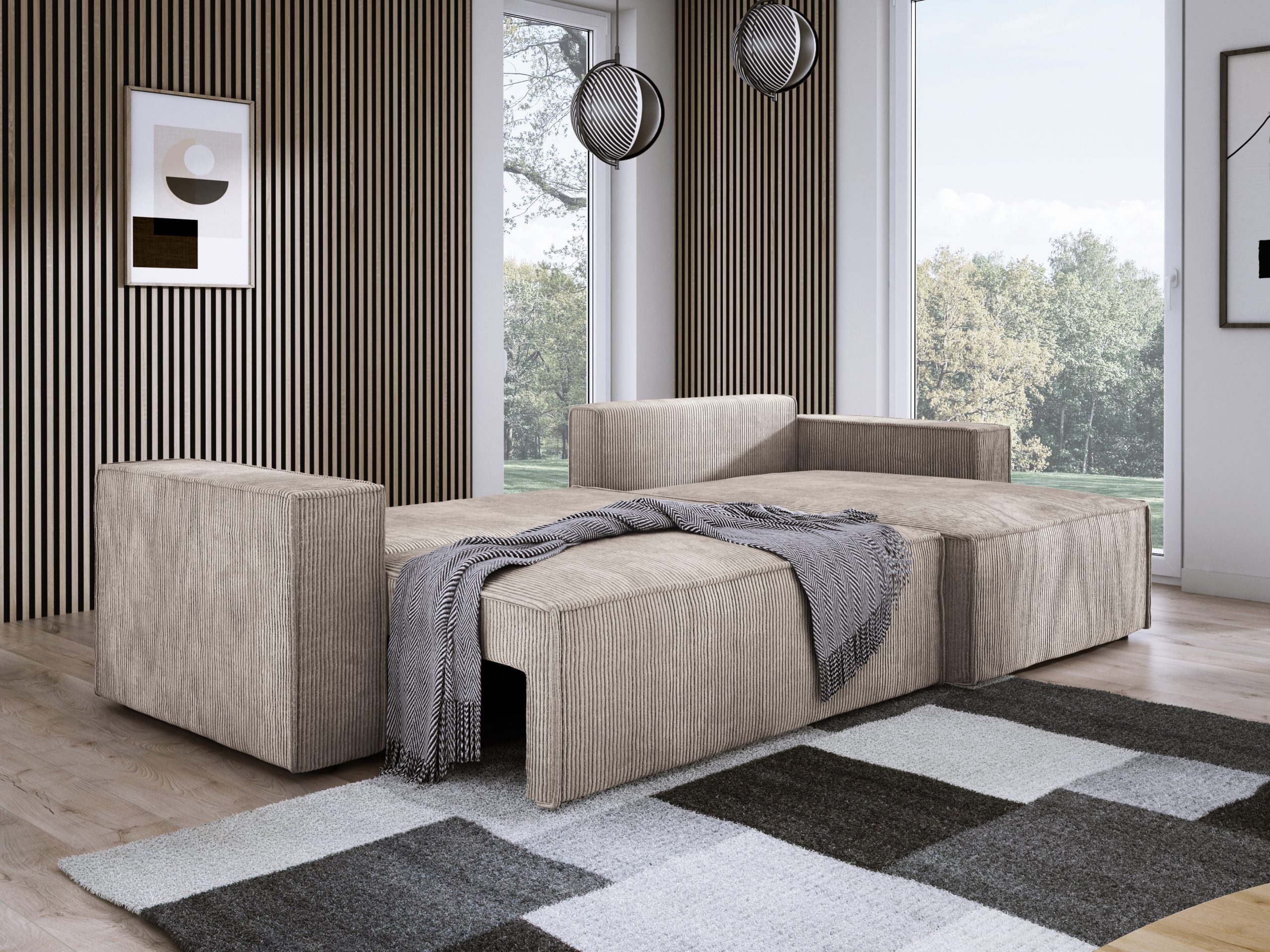 Introducing the 4 Seater Cord Corner Sofa Bed – ‘Denver,’ a perfect blend of minimalist design and practical functionality. Crafted in soft jumbo cord fabric, this square-shaped sofa bed offers a sleek and modern look that complements any contemporary living space. Whether you’re hosting guests or simply relaxing at home, this couch provides the ideal seating solution with its spacious design that comfortably seats four people.