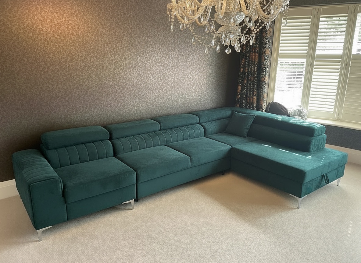 Denton Long – Large Corner Sofa Bed with Storage and Adjustable Headrests UK