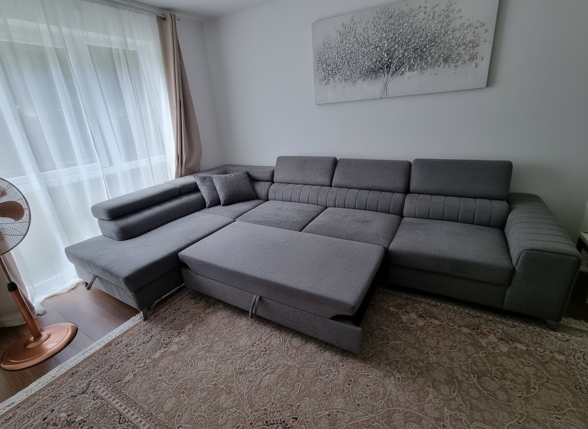 The Denton corner sofa bed includes a convenient Dolphin sleeping mechanism. With this assisted system, the sofa quickly transforms into a comfortable sleeping area measuring 130 x 193 cm.