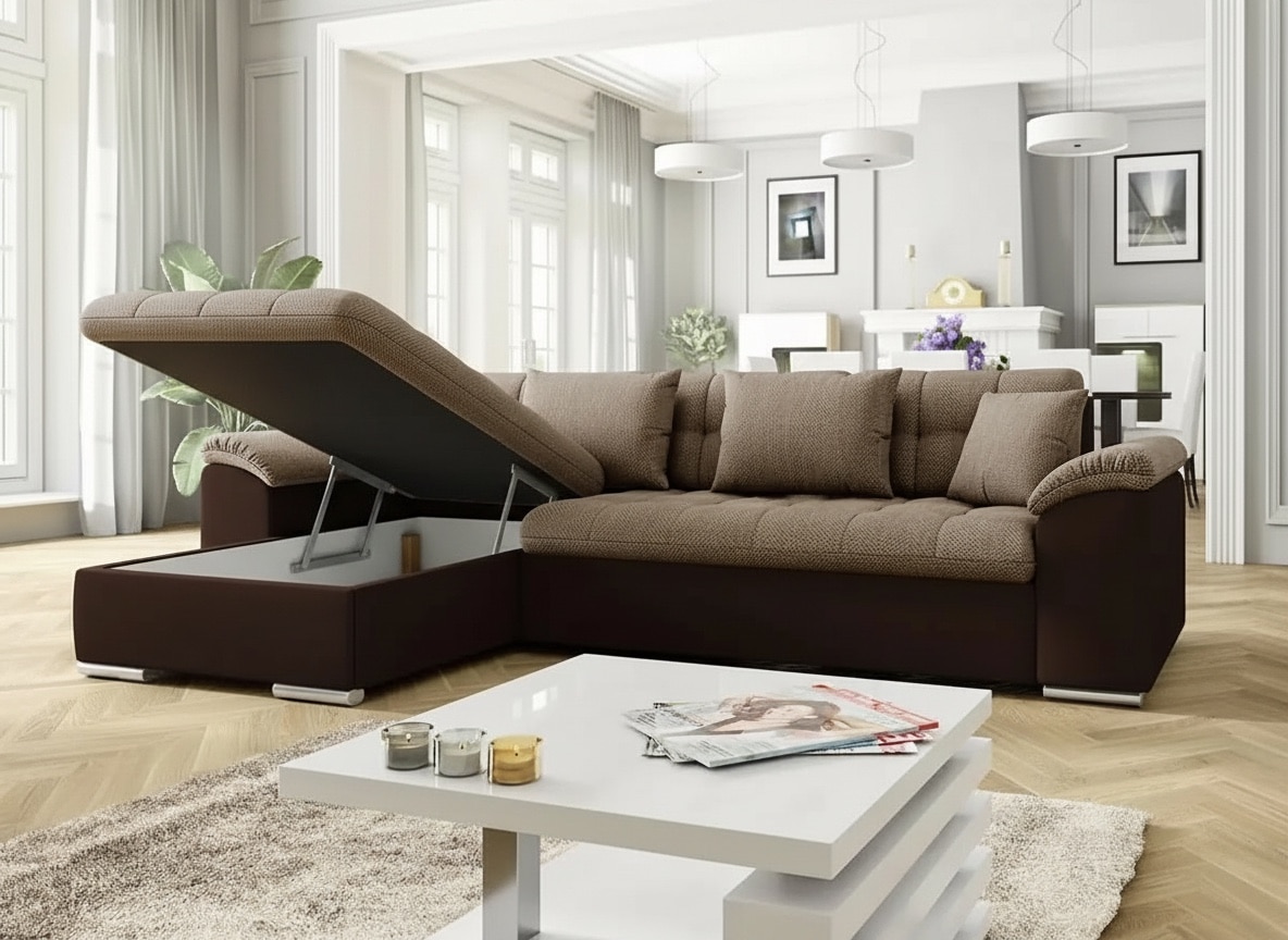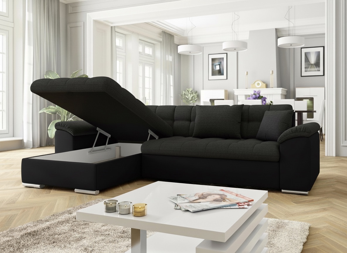 Maximise your living space with 2 large under-seat storage compartments. This Corner L shape sofa bed with storage gives you the perfect place to store: