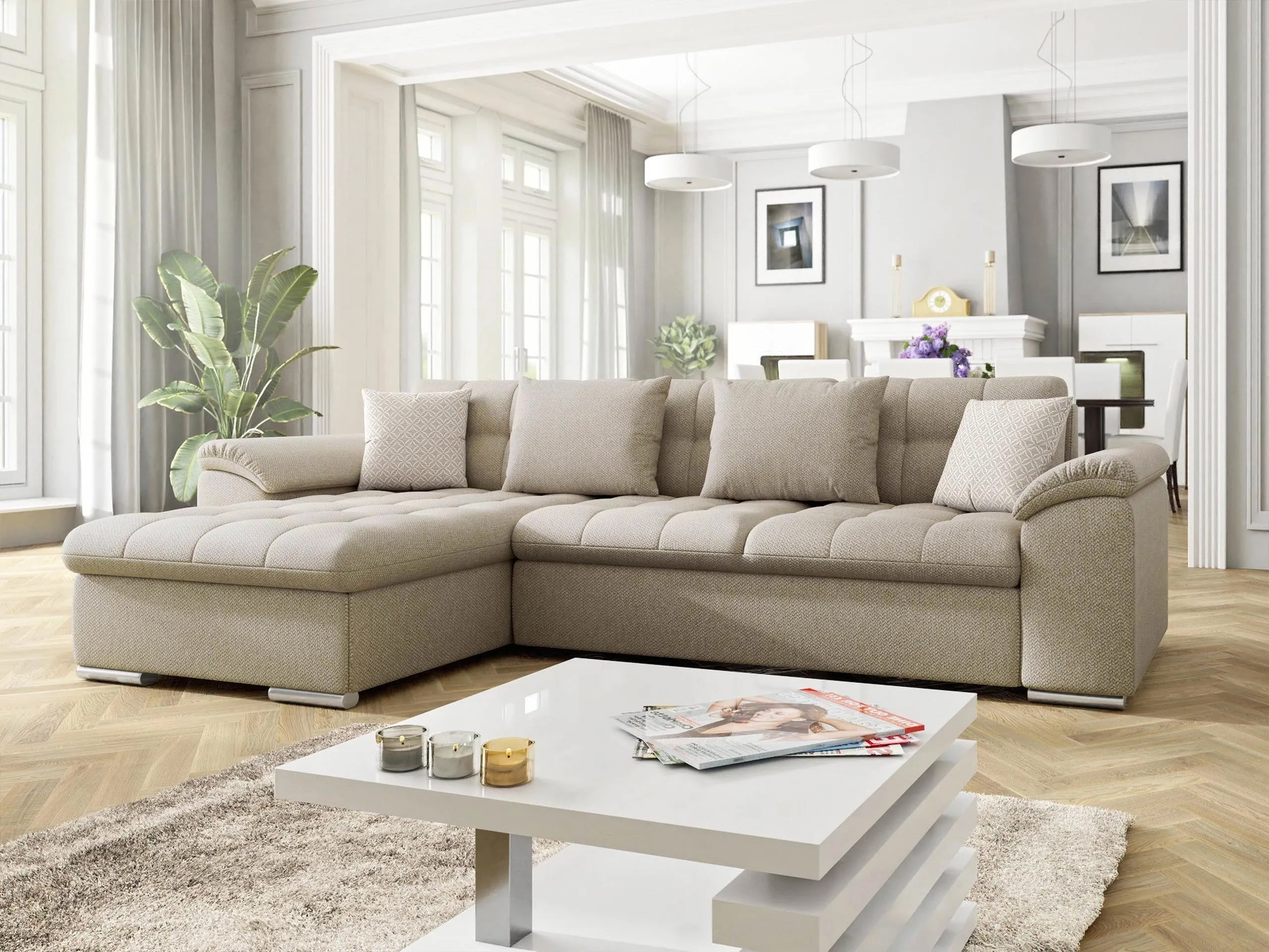 Its clean lines and modern silhouette allow this L shape sofa bed to blend effortlessly into both classic and contemporary interiors.