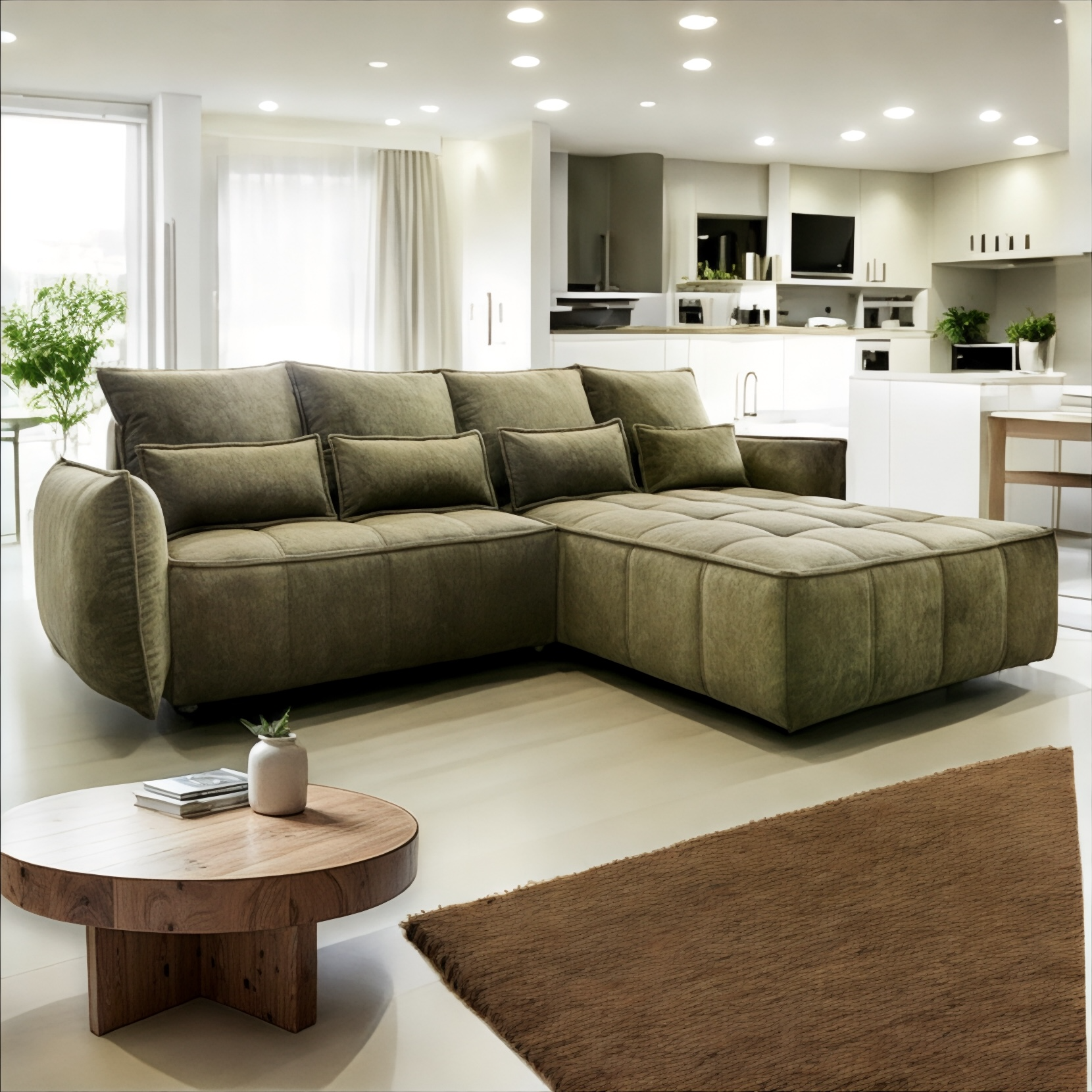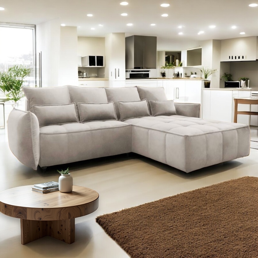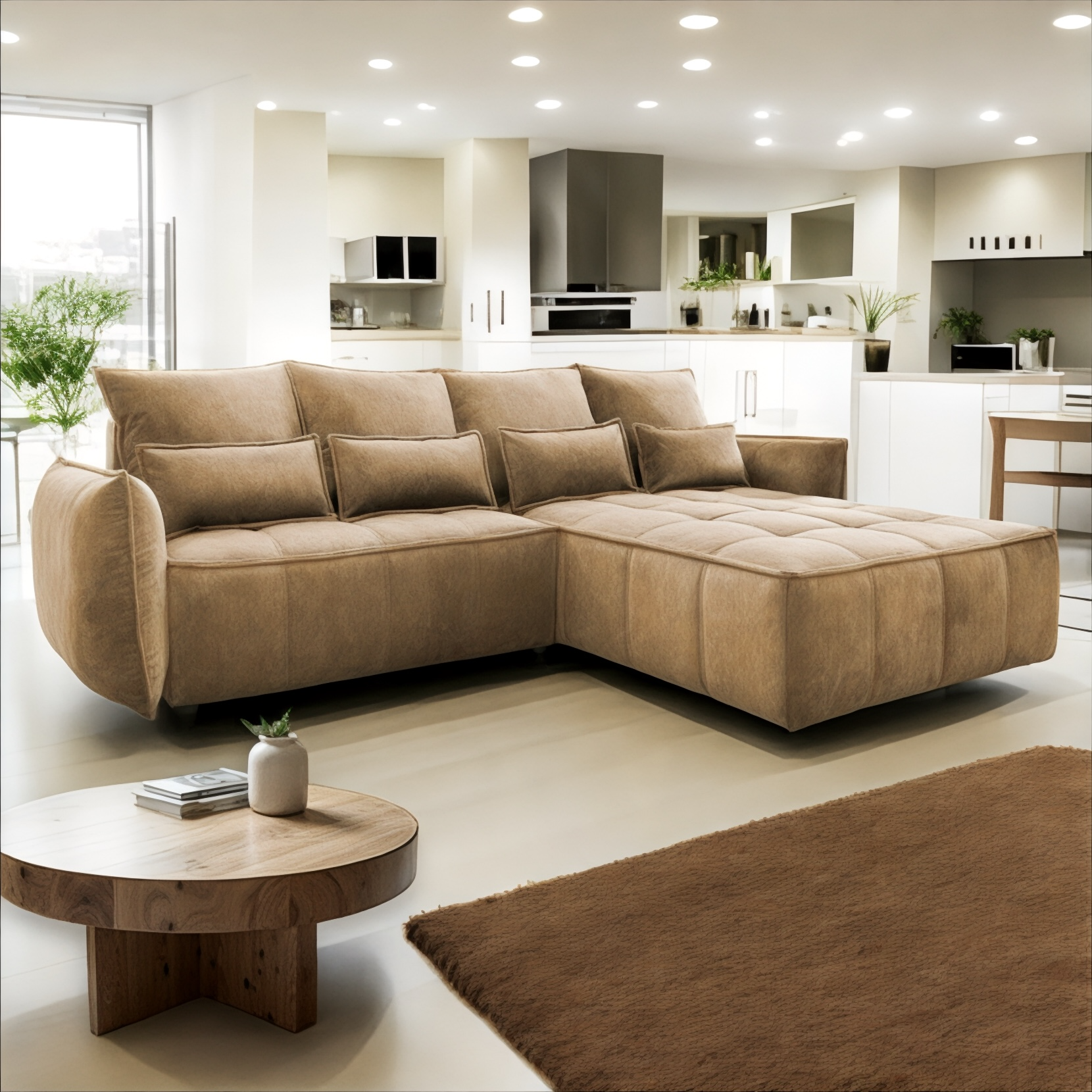 The Luton corner sofa bed with storage is the perfect combination of modern design, everyday comfort and smart functionality. Designed for contemporary homes, this versatile corner sofa easily transforms from a spacious seating area into a comfortable sleeper bed — while keeping your living space organised and clutter-free.