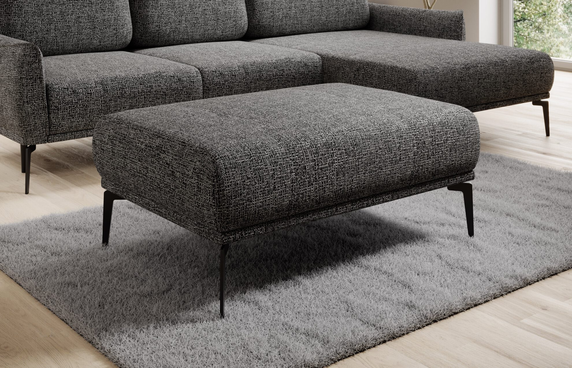 Soft bouclé fabric with a hidden, delicate herringbone design. This fuzzy fabric pairs perfectly with curved or rounded pieces.