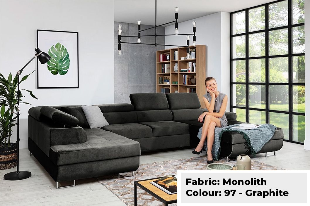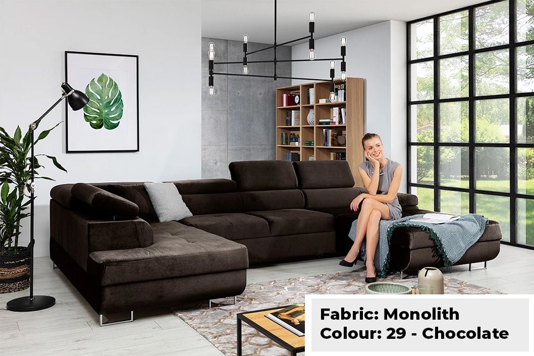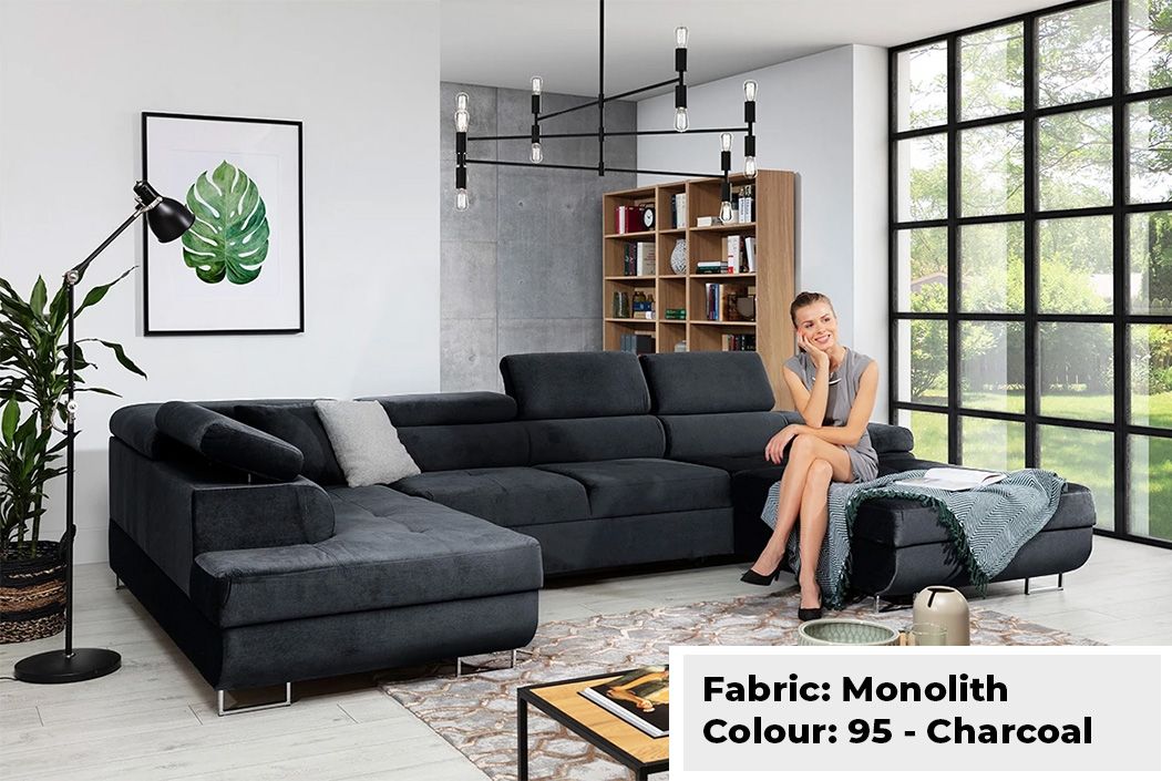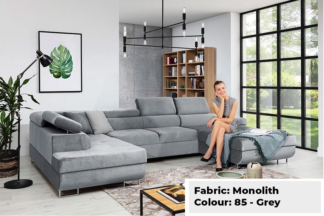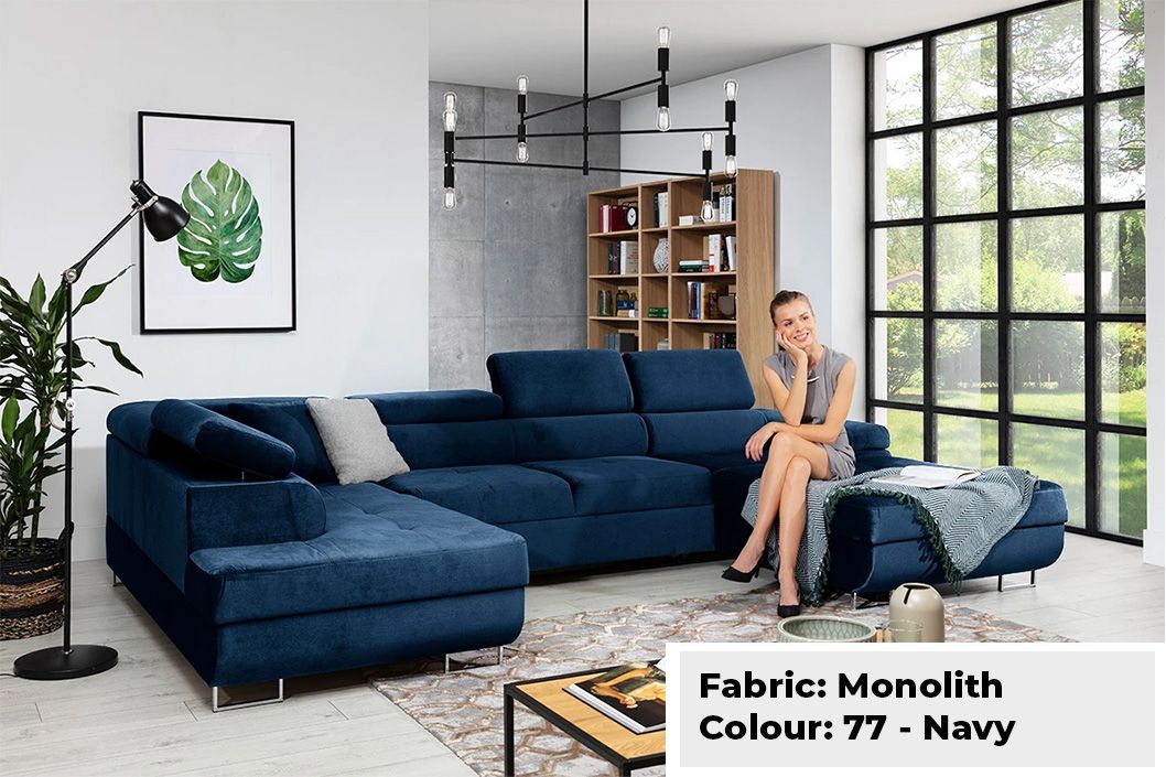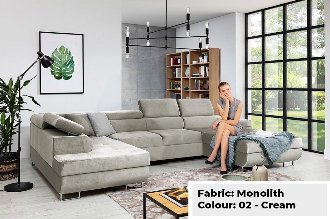 Large Quality Sofa Bed 7 Seater U-Shape OSTON With Storage . This grand sofa features a spacious U-shape design, offering ample seating and creating a cosy ambiance for gatherings. With adjustable headrests and integrated storage, it combines personalised comfort with practicality, allowing you to keep your living space organised and clutter-free. The Oston U-Shape Sofa Bed with Storage effortlessly transitions into a comfortable bed, providing a convenient sleeping solution for guests. Elevate your home with this bespoke masterpiece, where style, comfort, and functionality harmoniously come together.