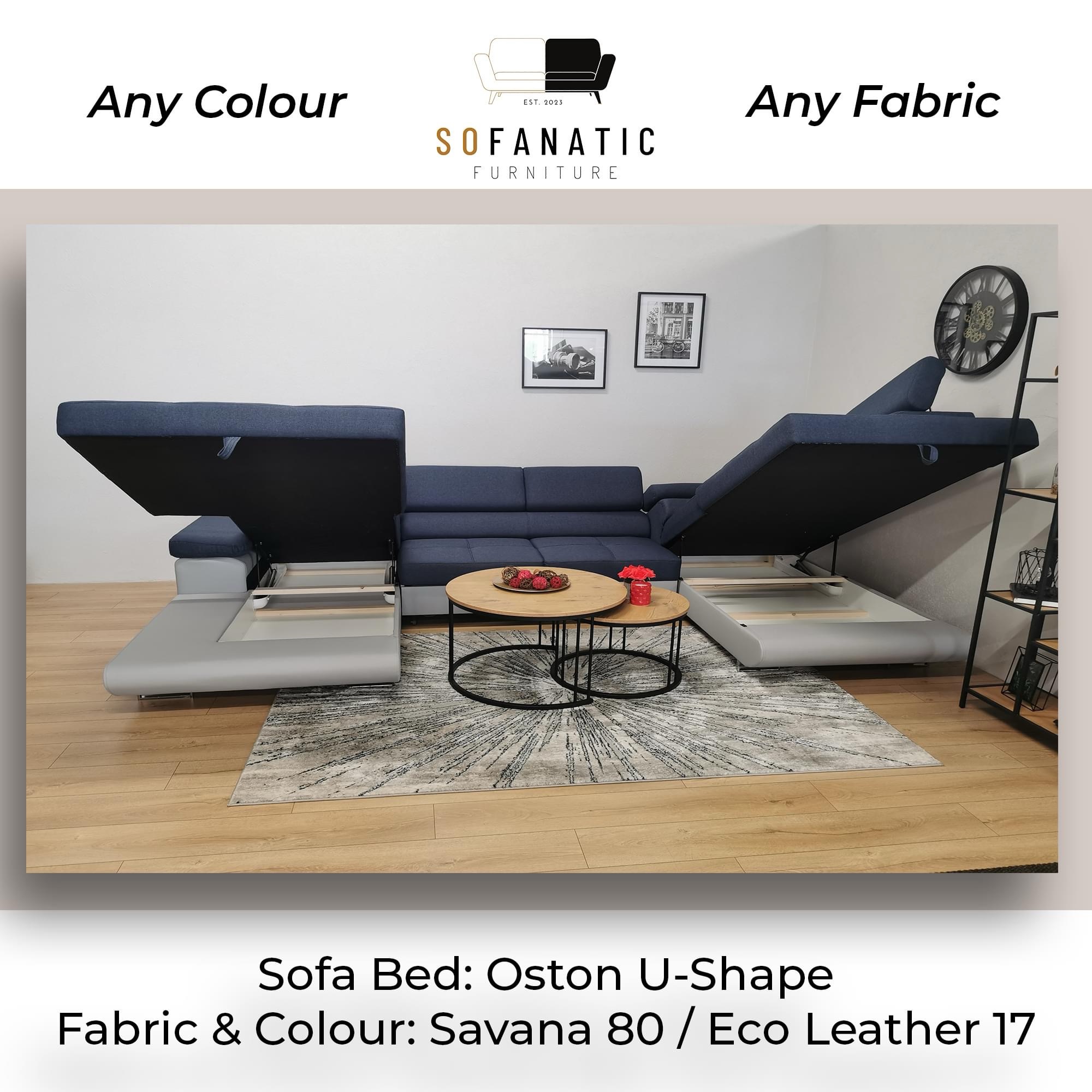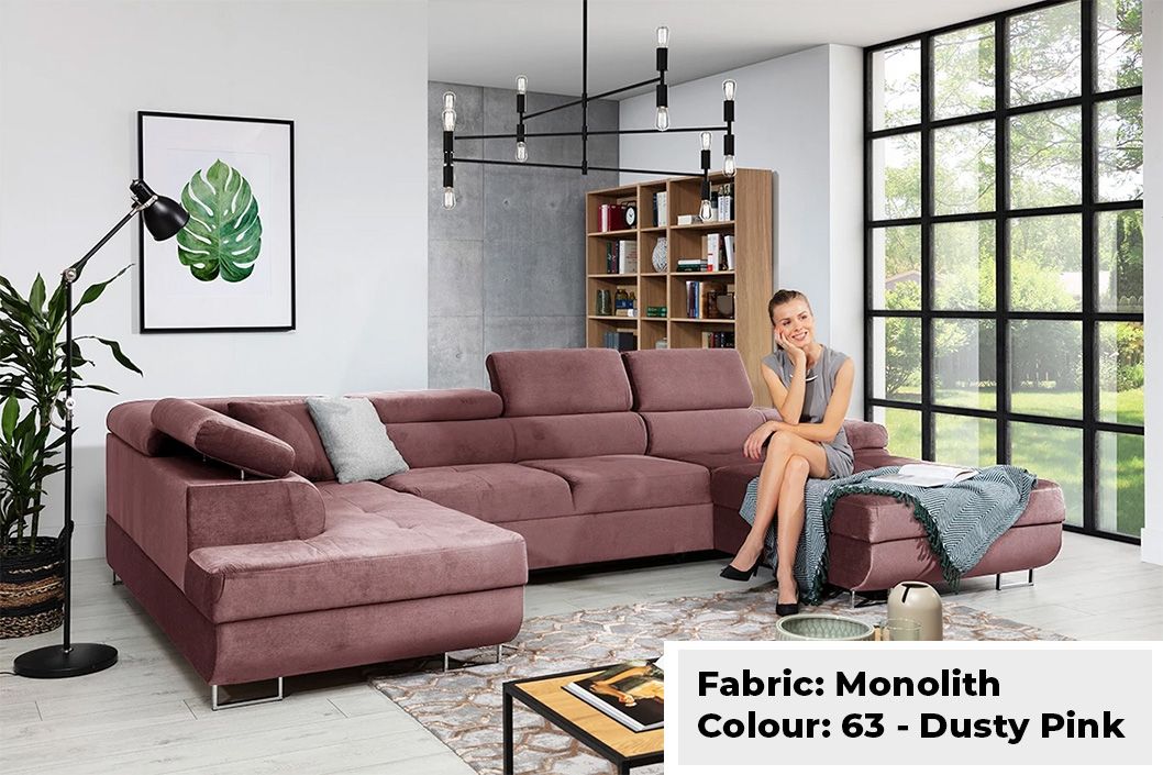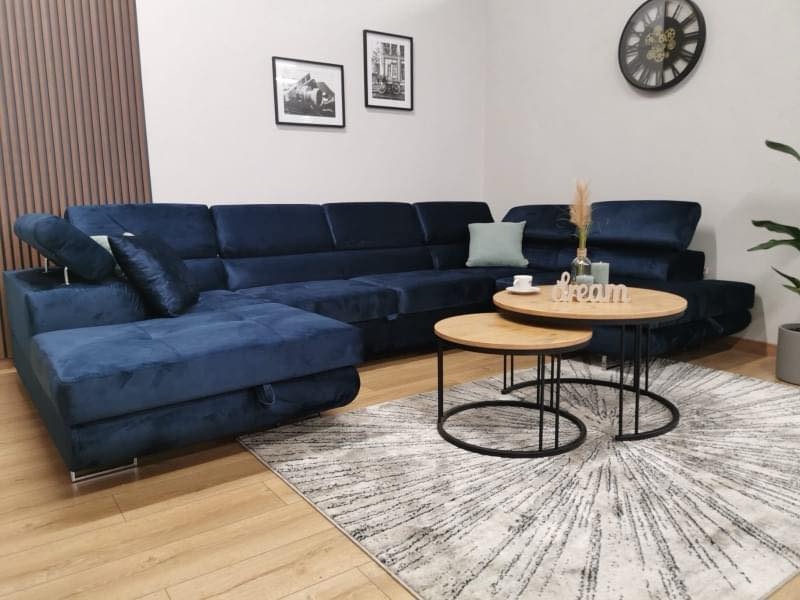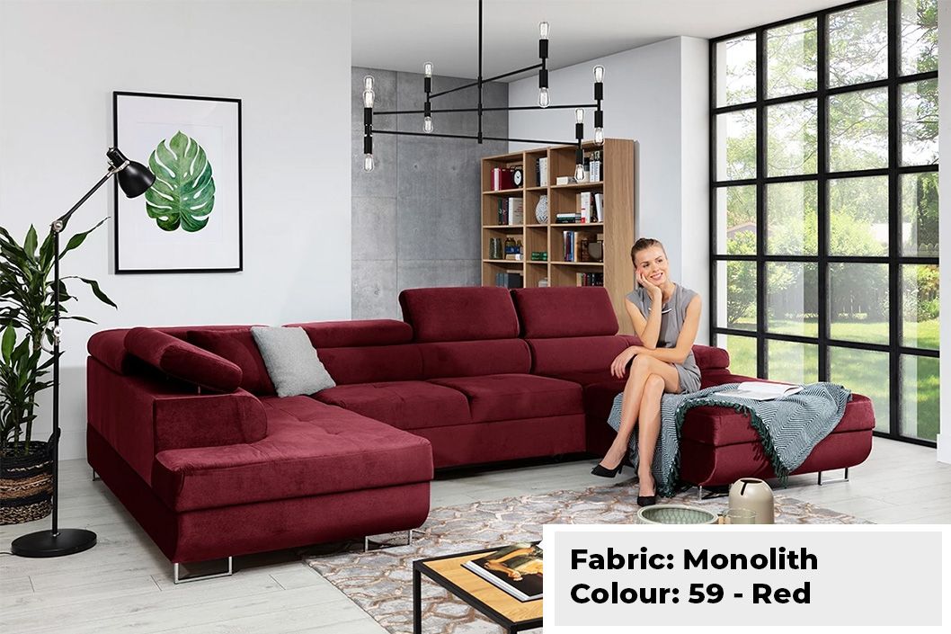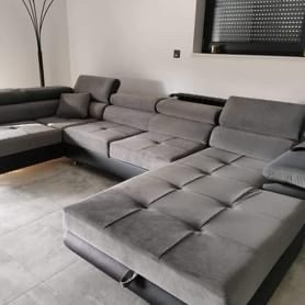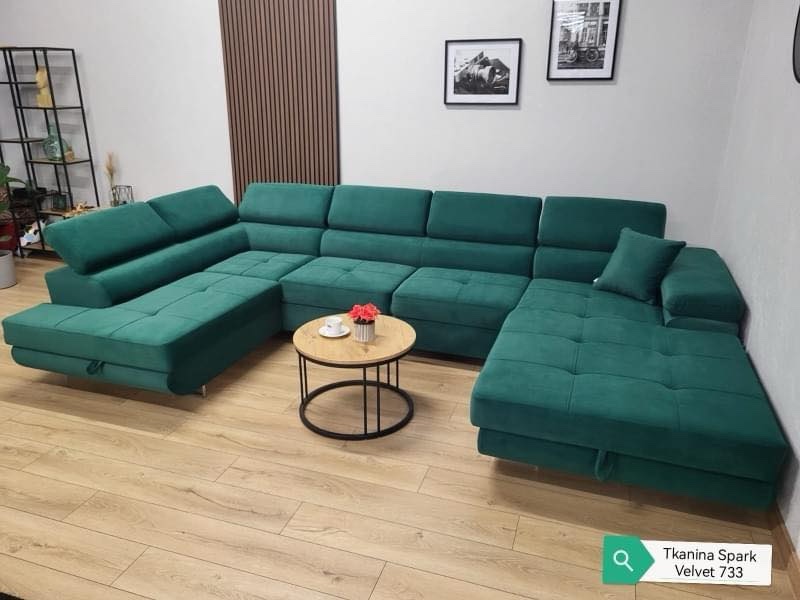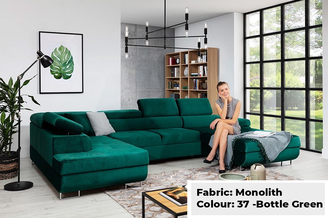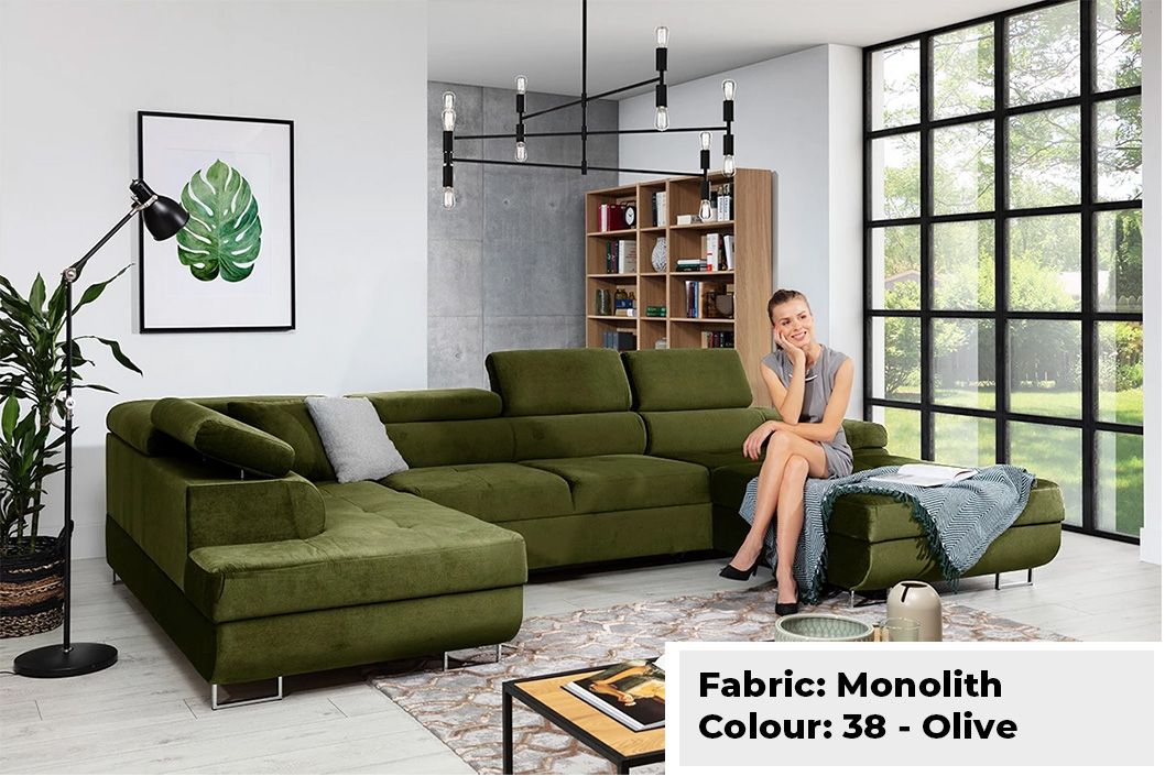 Large Quality Sofa Bed 7 Seater U-Shape OSTON With Storage . This grand sofa features a spacious U-shape design, offering ample seating and creating a cosy ambiance for gatherings. With adjustable headrests and integrated storage, it combines personalised comfort with practicality, allowing you to keep your living space organised and clutter-free. The Oston U-Shape Sofa Bed with Storage effortlessly transitions into a comfortable bed, providing a convenient sleeping solution for guests. Elevate your home with this bespoke masterpiece, where style, comfort, and functionality harmoniously come together.