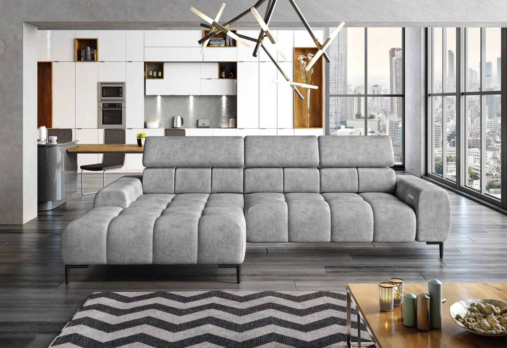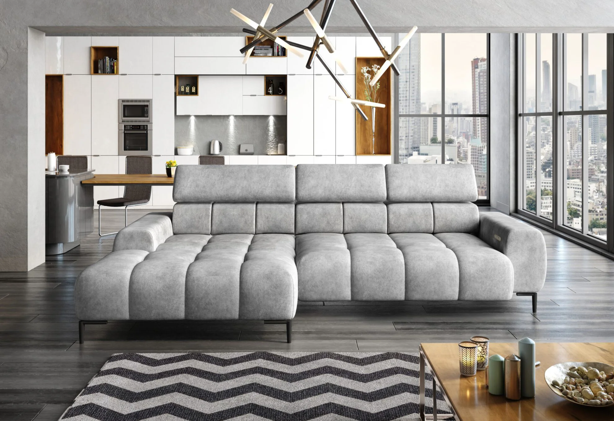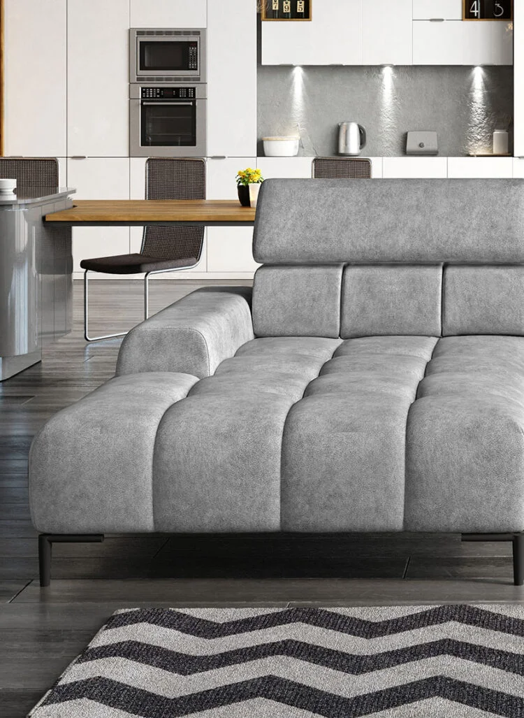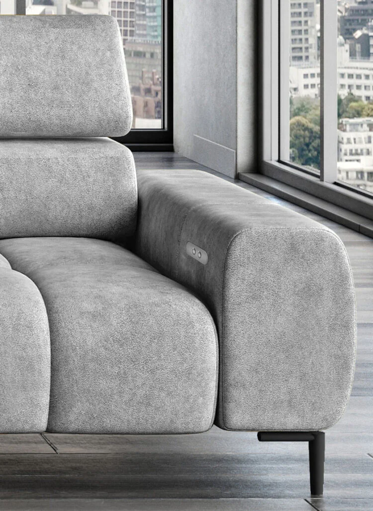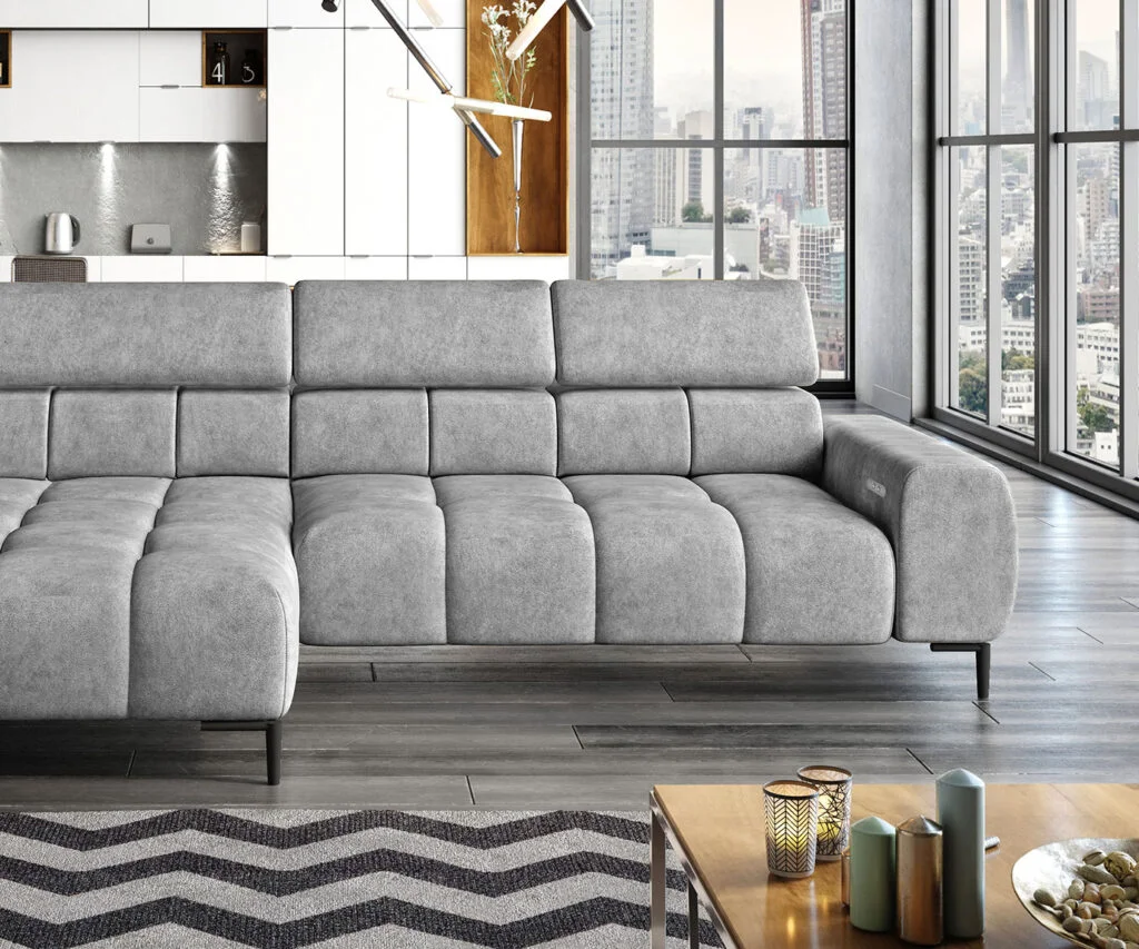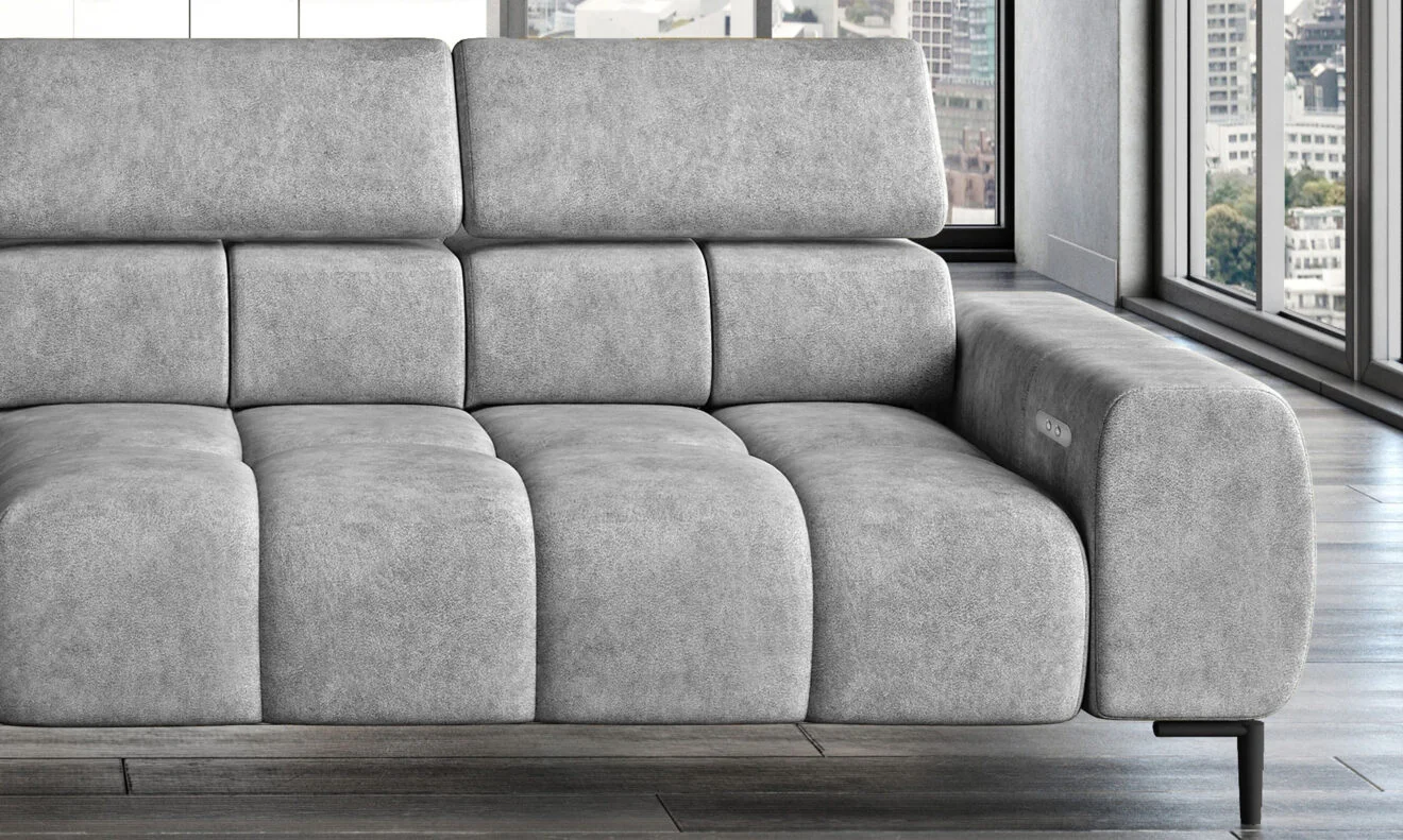 Indulge in ultimate relaxation with the adjustable headrests and electric seat depth feature of the “Modern Chaise Sofa ‘PLAZA’. Tailor your seating experience to your desired comfort level, ensuring optimal support and a personalised lounging experience.