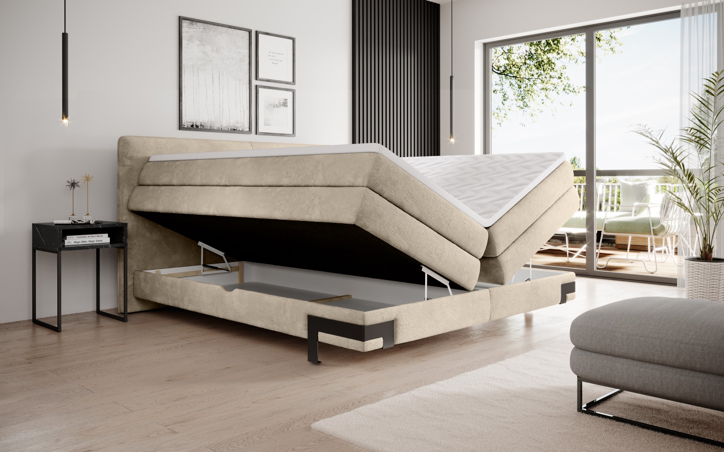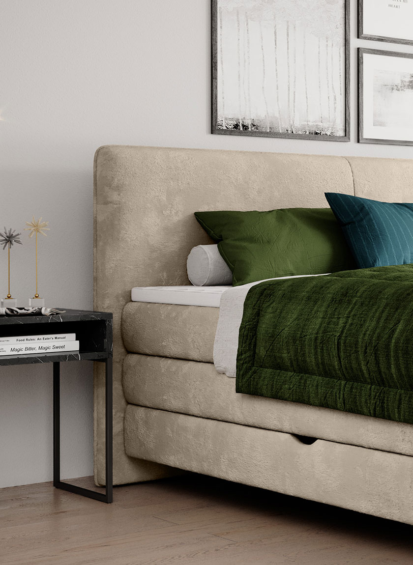 In addition to its remarkable comfort, the “VALENTE” bed is equipped with two spacious storage compartments. These compartments provide ample space to conveniently store your bedding and accessories, keeping your bedroom organised and clutter-free.